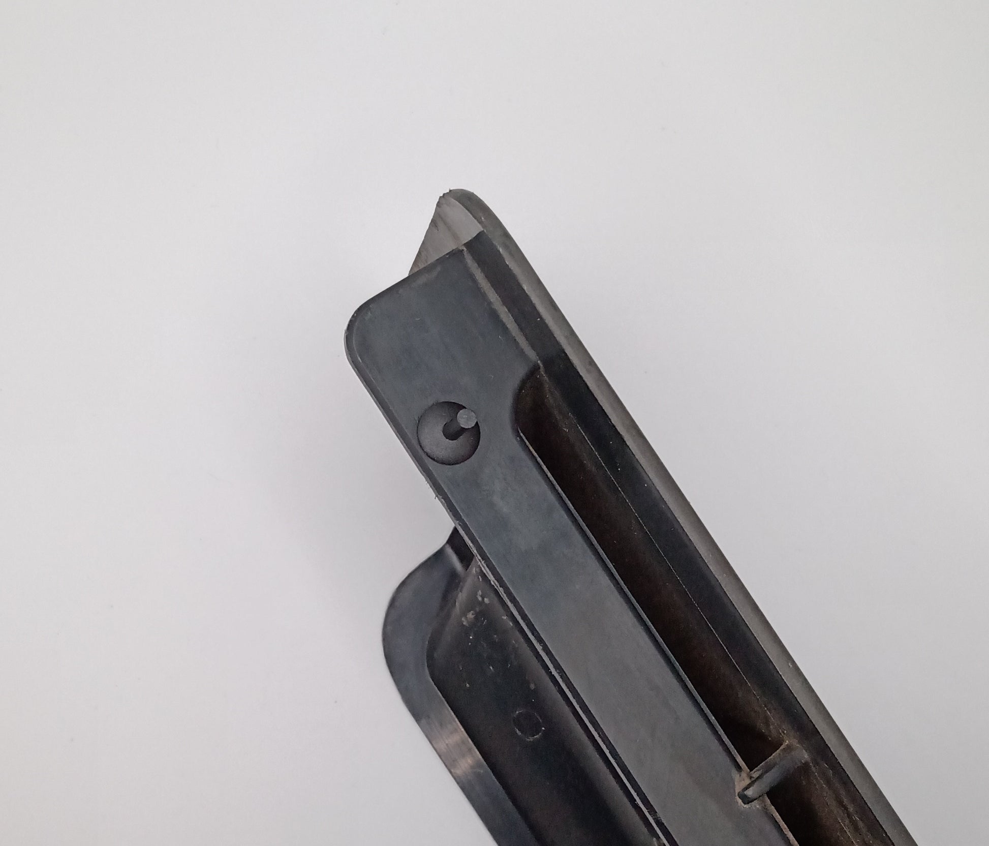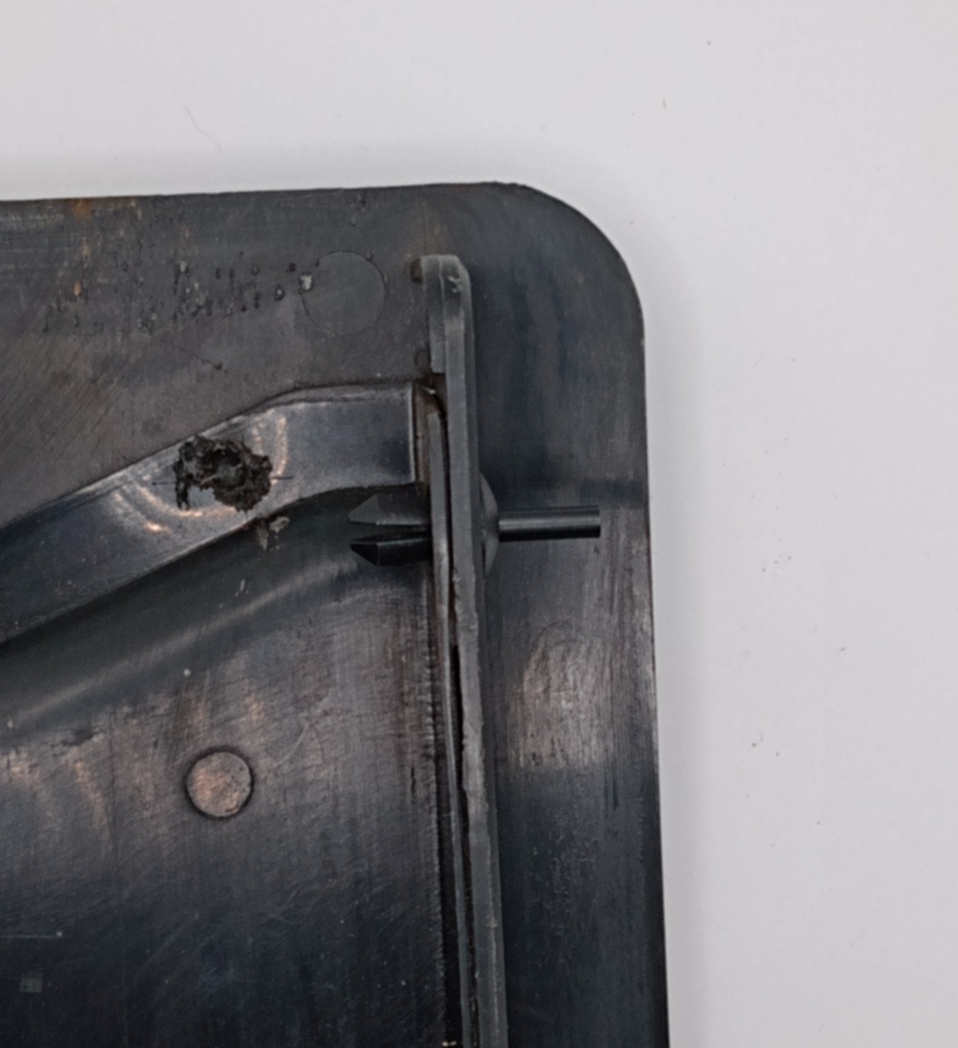 Hold the guide in position. Insert the clip. Push the pin in until it is level with the head of the clip.