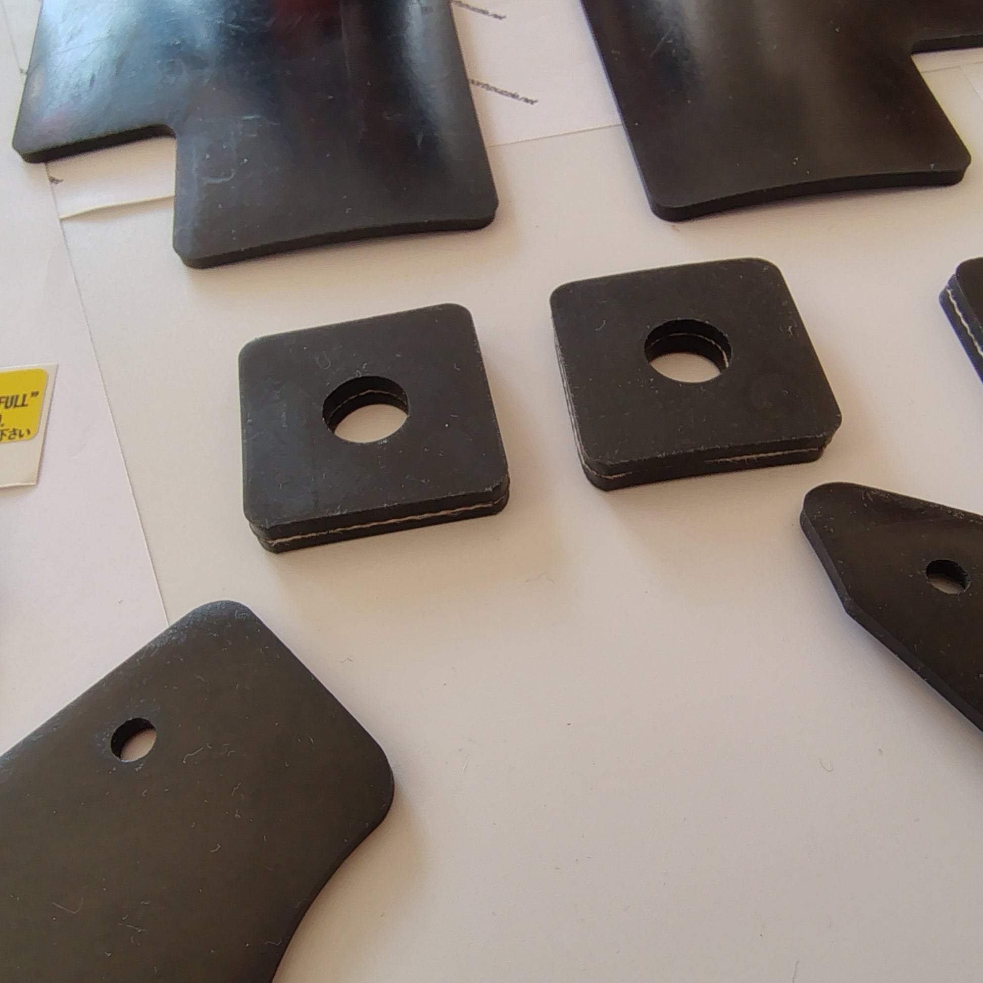 shim and gaskets for the bib hinge. The shim is made of 6mm reinforced rubber, the gaskets are made of 1.5mm reinforced rubber.